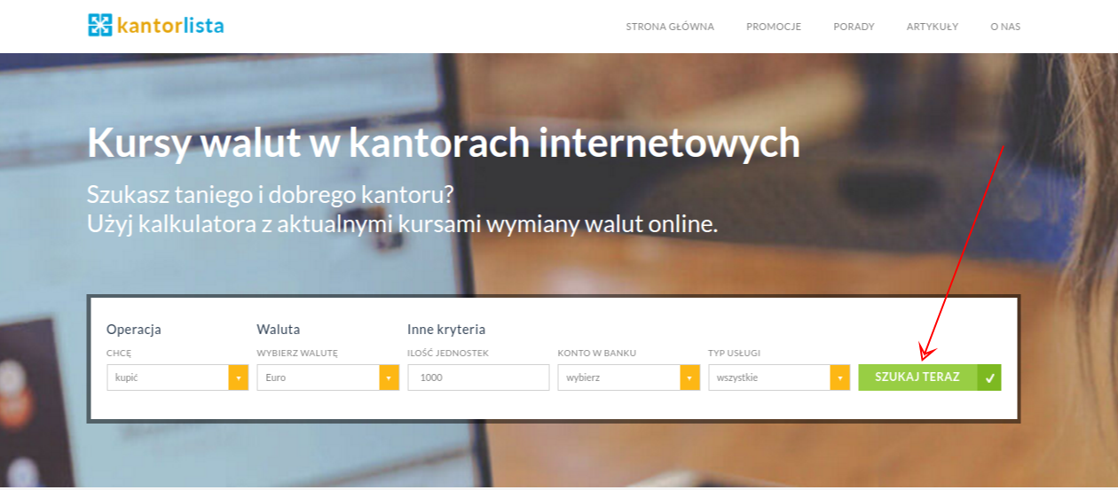 Kantorlista jest dla wszystkich, którzy chcą wymienić walutę naprawdę tanio. Obsługa jest bardzo prosta, dlatego z naszym portalem powinien poradzić sobie każdy. Wystarczy, że wejdziesz na kantorlista.pl, wybierzesz walutę i wpiszesz kwotę. System pokaże ci wtedy, w którym kantorze dokonasz najtańszej wymiany. ...